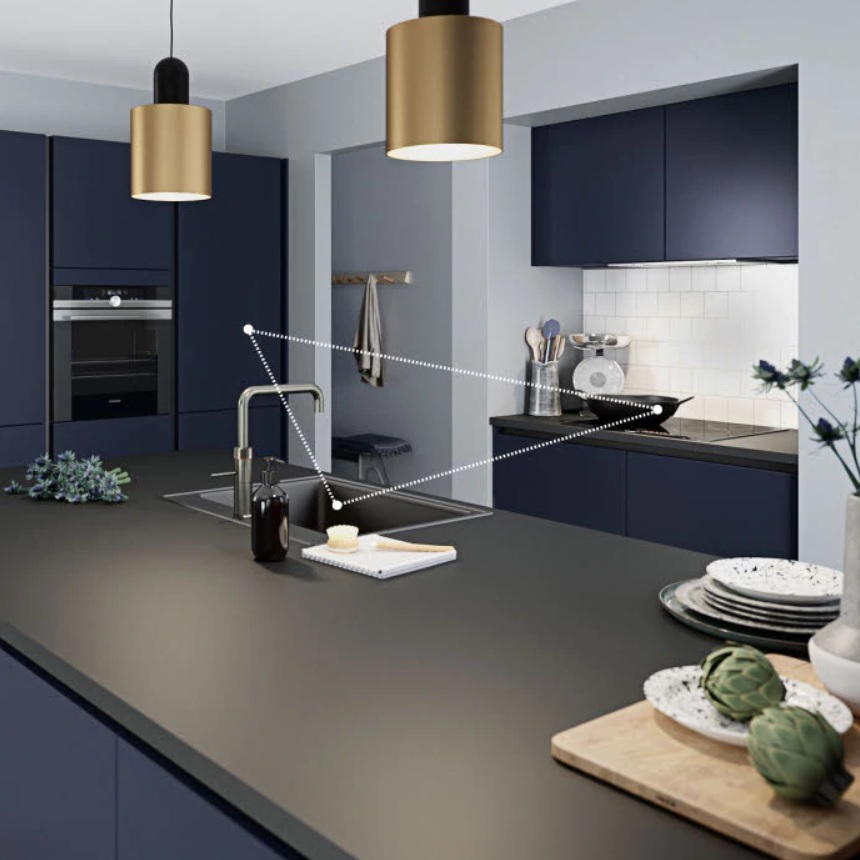 For best mulig flyt på kjøkkenet, er det viktig å ha tingene du bruker mest nærme hverandre – i en kjøkkentrekant, også kalt arbeidstrekant.