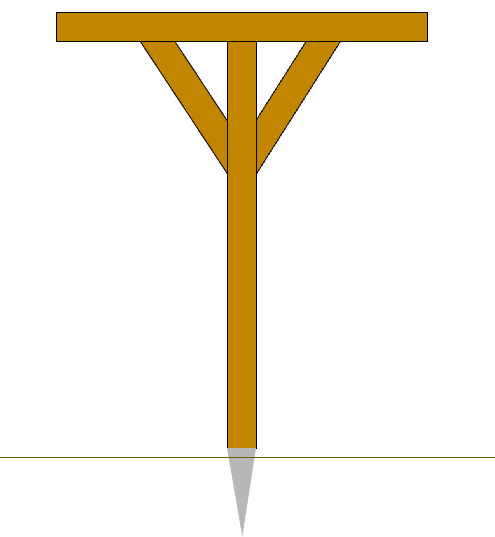 Det eneste du trenger å gjøre er egentlig å bygge to identiske deler du kan henge tørkesnorene i, plassere dem med ønsket avstand og henge opp tørkesnorer mellom dem. Du kan selvsagt velge å bruke én stolpe i hver ende, men da får du kun plass til å henge opp én snor. Bygger du derimot slik illustrasjonen under viser, får du muligheten til å henge opp flere snorer og får plass til mer klær på stativet.